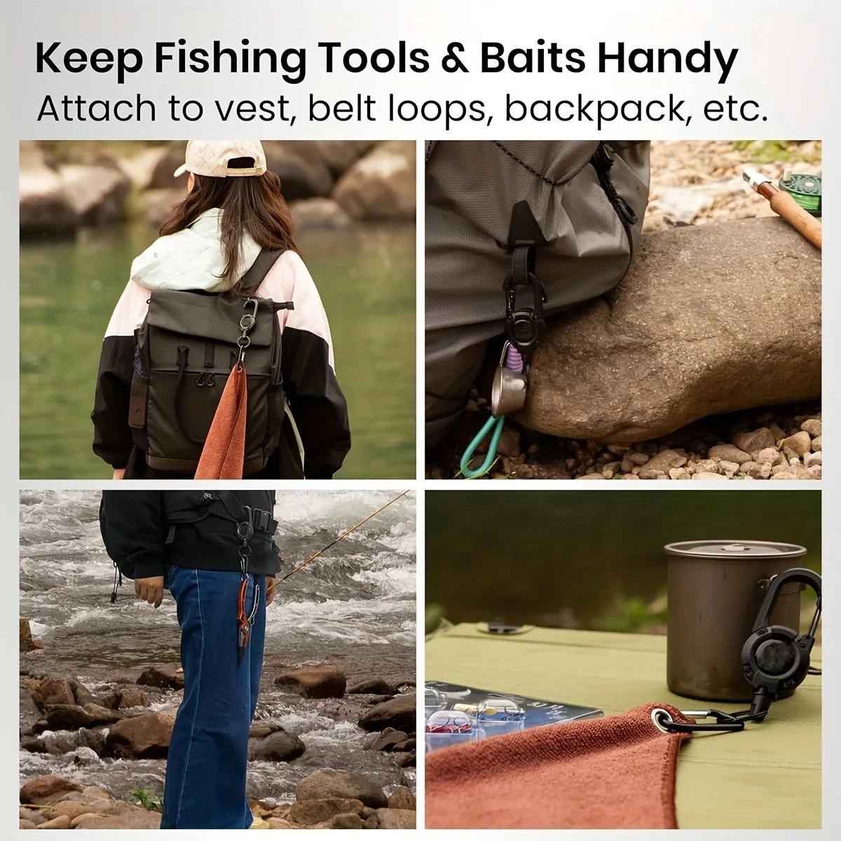 3. Verrouillage à pression en aluminium robuste avec ressort pour une installation/retrait rapide sur les ceintures, sacs, ceintures ou bagues